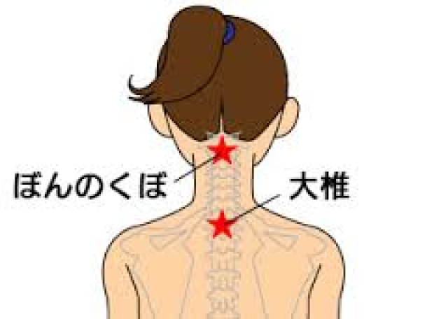 首を前に倒して首の後ろに手を回し一番でっぱっている骨のすぐ下